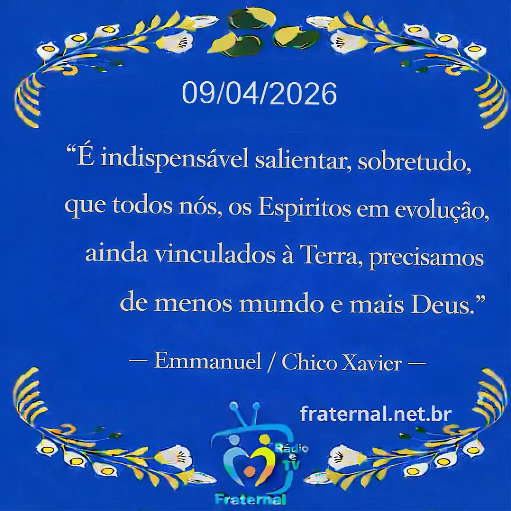 "É indispensável salientar, sobretudo, que todos nós, os Espíritos em evolução, ainda vinculados à Terra, precisamos de menos mundo e mais Deus.". Emmanuel / Chico Xavier.